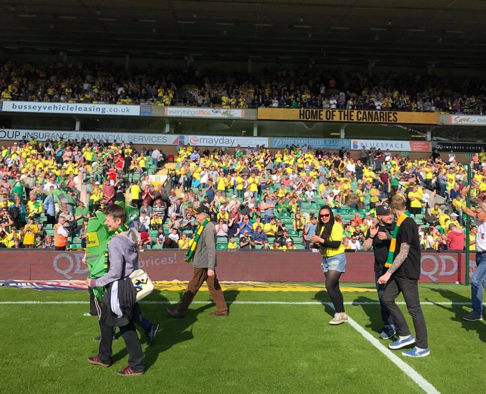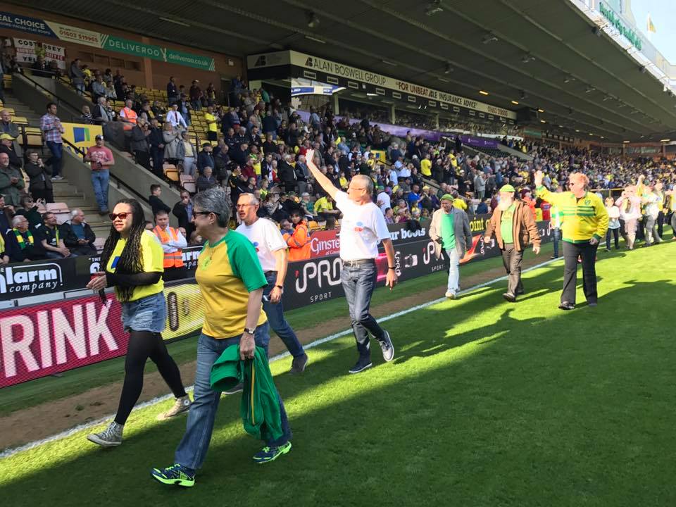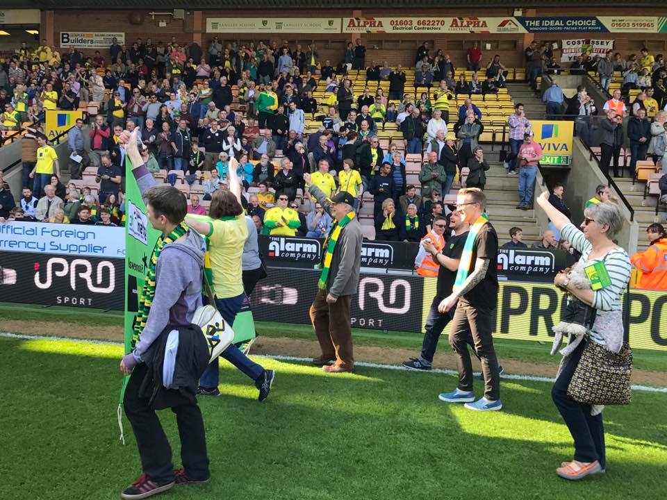 Here we are proudly parading round the pitch on 8th April 2017. And we beat Reading 7-1!! What a beautiful day!